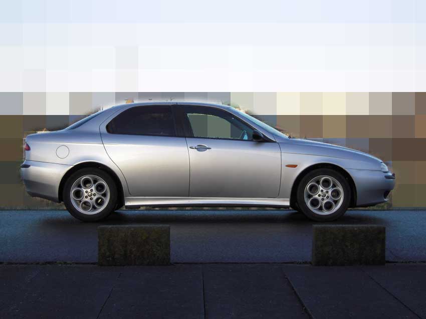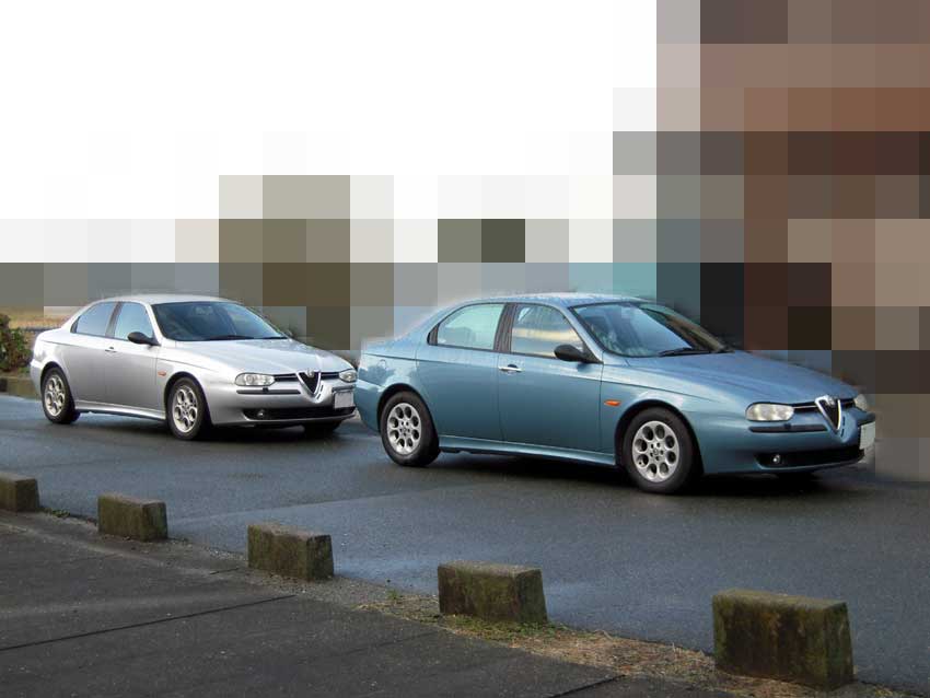 あまりの良さに惚れ込んでしまったので、譲って頂きました。箱男さん有難う!ちょっと高めだった空気圧を低めに調整したら、更に乗り心地が良くなりましたよ。 このホイールの組み合わせをどこかで見たことがあるなーと思って本棚を探していたら、元セレ乗りのK君から譲ってもらった156デビュー当時の本を見つけました。発表時のプレス資料だったかな? あった!コレだ! 潜在的に刷り込まれていたのかもしれません。K君有難う! 真似て撮ってみたものの、やっぱりコンデジではムリだったり(笑)。 やっぱりヘッドランプウォッシャーとサイドスカートはいらないと思う今日この頃。 156を買った時から気になっていた高速道路での風切り音。