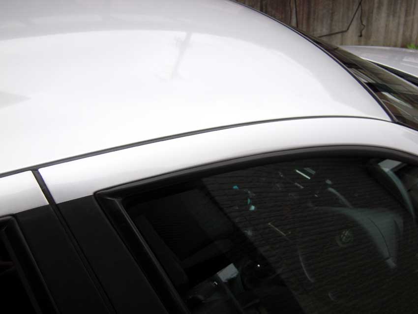 特に横風を受けると写真の場所から「ヒューヒュー」「バサバサ」聞こえるんですよ。更に豪雨だと雨漏りする始末…。 この場所は車体側にゴムのモールがあって、ドア側は板金で密閉する構造。 車体とドアの建てつけが悪く隙間が広いのかな?と思ってみたけど、外から見たチリは合っている状態。 ゴムのモールを新品に交換すれば良くなりそうだけど、万が一効果が無かったら悔しい(笑)。 うーんうーんと唸っていたら、奥の手を思いつきました! チャッチャチャーーー! ビニールテーープーーー!(笑) 使い方は緑色の線の部分に貼り付けます。 テープの色はさりげなくしたかったので透明にしました。 一枚だと効果が薄そうなので、一部は2枚重ねで。 貼り付け後高速を走ってみたところ、目論見通り風切り音は低減されていました!カンタンに出来るので今度はもう少し枚数を増やしてみようと思います。 ちょっと前にジュリア乗りの箱男さんが所有する156-V6 Qシステムに乗せてもらった時に、ウチのTSと比べてあまりに乗り心地が良くて感動したんですよ。