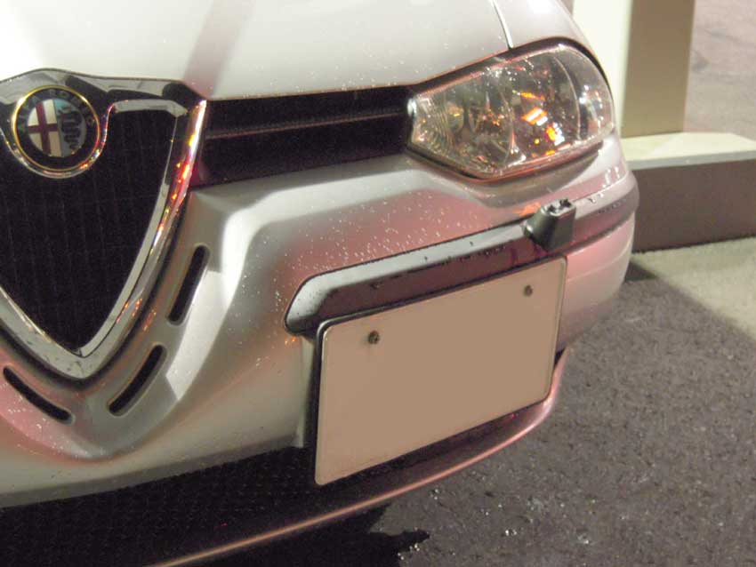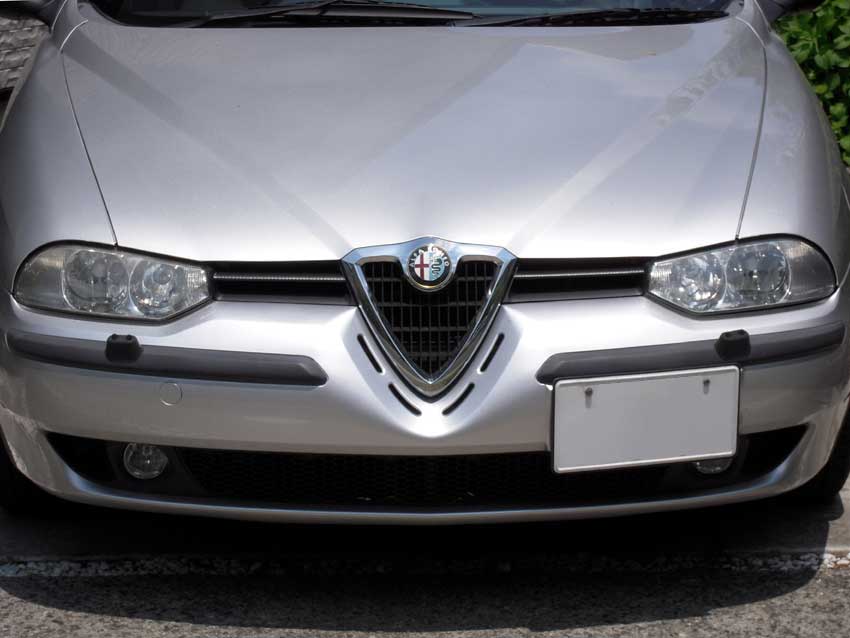 原因はバンパーとナンバープレートに10mmぐらいの隙間があり、その間に洗車機のブラシが入り込んでしまうため。 ちなみにフェイスリフト後(ジウジアーロ顔)の156は市場からのクレームがあったのか台座が付いています。 数年前は「洗車は手洗いに限るぜ!」とせっせと小一時間かけてやっていましたが、うえしまセンセイに現代の洗車機の高性能ぶりを教わってからは、もっぱら洗車機派に。 しかし洗車機にかけるたびにナンバープレートを外すのは面倒くさいしスマートでないなと思い、うえしまセンセイに頂いたナンバーフレームを愛用してました。 ところが、先日横フィングリルをカーボン調にしたところナンバーフレームのメッキが主張しすぎている気がしてきたので何かイイ解決法はないかと思い、自作で台座を作ることにしました。 用意したのはホームセンターで売ってた大きさ300mm×450mmで厚さ3mmの黒い発泡PPシート。確か1000円ぐらい。 試作1号はナンバーの下にアクセントでデカールでも貼ろうかなと思い、やや大きめにしてみました。 するとフォグランプが半分以上隠れてしまいNGに…。 デカールは諦めて、試作2号はナンバープレートよりも一回り大きいサイズにしてみました。 フォグランプは1/5ぐらい隠れているけど大丈夫そう。 早速効果があるか近所のスタンドで洗車機トライ―――ッ!! 結果は… 思惑通りクリアしました!良かった。 ちなみにコレが過去に洗車機で曲げた跡。ヘロヘロですわー。 この台座はドレスアップというよりも純正風に見える洗車機対策ですな。 盾のグリルが際立って見えてイイカンジです。 先日試してみたベルト鳴き止めスプレー。結局ヒュルヒュル音は収まらず、ベルトはシロでした。