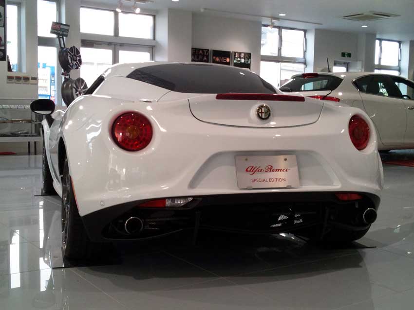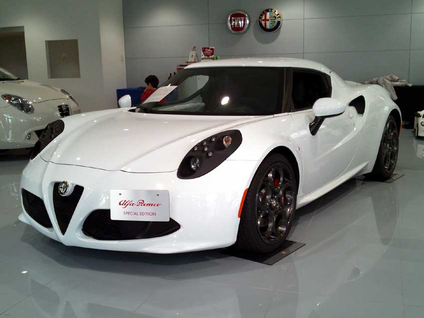 500Sのクラッチマスターの不具合でフィアット・アルファロメオ浜松にお邪魔したら、アルファロメオ4Cが展示してありました!