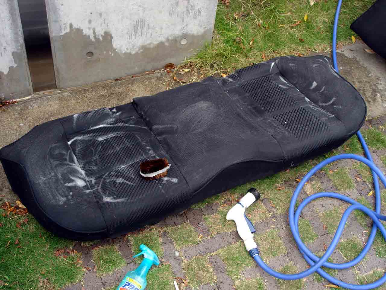 車重が軽い28と比べると156は明らかに重く、乗っててイライラするので、思い切ってリヤシートを外して軽量化に踏み切りました。 ウソですw 普段子供はリヤシートに乗せてて、ジュースやお菓子を食べこぼしたりするのはしょっちゅう。 かなり汚れて来たので、思い切ってシートを外して掃除しました。 箱男さん> やりかねんとか言わないw シートを外すと出るわ出るわ。お菓子のオマケやグミ、飴、ラムネ、ピーナッツ・・・。 終いにはどんぐりまでw 正にカオスと化してましたwww 外したシート(ファブリックタイプ)。キャップボルト4本で止まってるので取り外しは簡単。 ところどころ染みになってて、きちゃない・・・。 掃除方法は液体アタックとタワシでゴシゴシして、泡が無くなるまで水で流すだけ。