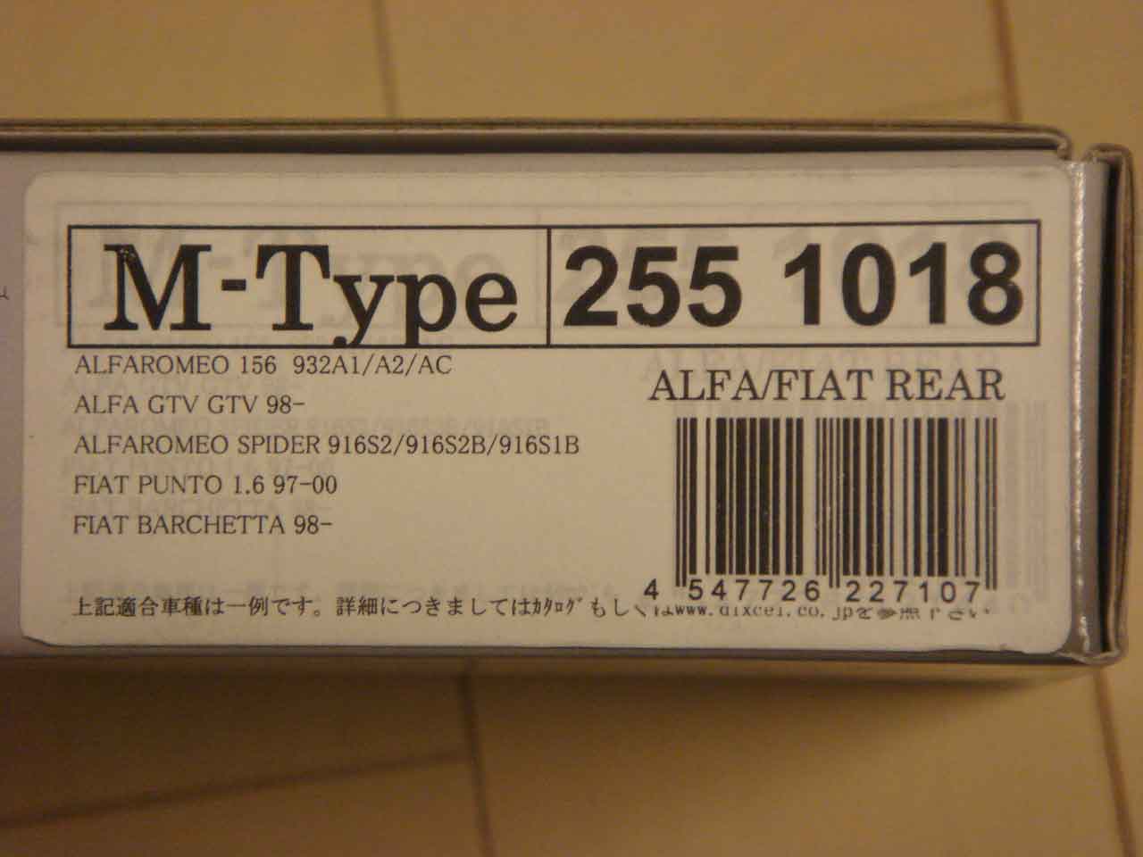 最初はこれで良いかと思っていたけど、156はブレーキダストですぐにホイールが汚れてしまうのが不満。確かに街で見かける欧州車は国産車に比べてホイールが汚れてますよね。 前に足回りの設計をしている友達から聞いたけど、ホイールの汚れに一番うるさいのが日本人とか。欧州の人はブレーキは効くんだから汚れて当たり前と考えているようです。日本人は効いて欲しいけど汚れるのはイヤで、きっと綺麗好きなんですね。 なので、ついでに汚れのストレスが解消できたら良いと思い、アルファ乗りのMIYAに相談。 するとすぐに「使ったことは無いけど、クランツかディクセルが汚れが少ないみたいです」と的確なアドバイスをもらいました。 早速ディーラーにクランツのパッドの値段を確認したところ、フロント22000円、リヤ18800円で全部で40800円。純正よりも11600円高い・・・。ところがディーラーの営業マンが「お客様が購入された部品を、持ち込みで取り付けることも可能ですよ」と情報をくれました。 ちなみに156 TSは02年式からリヤのブレーキパッドの形状が変わっているので要注意。自分のはGF-932A2という車両形式で前期でした。 ネットで安いところを調べてみると、クランツのジガベーシックがフロント19404円(GF710)、リヤ16582円(GF762)で全部で35986円。ディーラーで買うよりは安いけど、純正より6786円高。 ディクセルのMタイプが前後同価格で15120円(F:251 1007 R:255 1018)で30240円。純正より1040円高。純正よりちょっと高いけど、効きが同等で汚れが抑えられるのであればOKということで発注しました。 あとは純正パッドでイマイチなブレーキの効き方が改善されると文句無し。好みもありますが、156は初期の効きが強すぎで運転が難しいんですよね。更にペダルの遊びが調整できれば良くなるかな? ディーラーから見積もりの連絡あり。