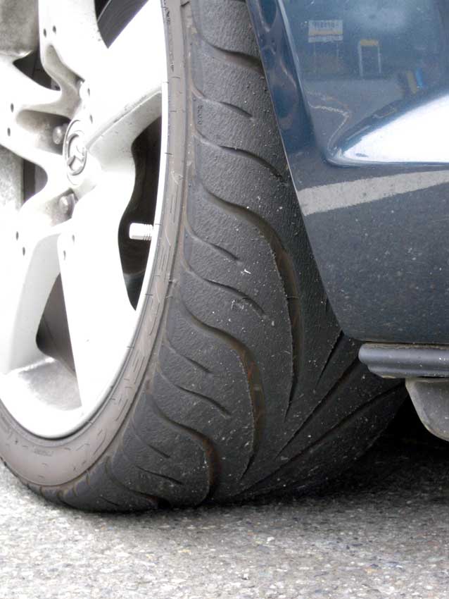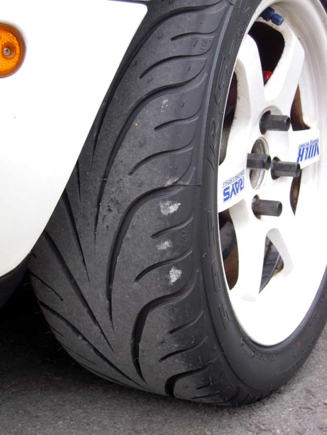天候はくもり時々晴れ一時小雨とまずまずなカンジ。残念ながら富士山は拝めませんでしたが、台数が20枠と多く賑やかでした。エントリーしてくれた皆様有難うございます。 前回の体験走行で白糸を気に入ってくれたBro,IT君@NB6C NR-Aが今回はフル参加。 アシはスペMでアンダーフロアスポイラーという仕様は自分と同じですね。 初参加はBro,IT君のお友達のザッキー君@CR-Z。 ついにハイブリッドカーがはこしゅうGPを走るようになりましたよ。時代ですなぁ。 フェデラル595RS-Rワンメイク(サイズ&車種制限無し)で競うF-Cupに主催者のはらっちさんがデビュー。 2LのBP+FCRキャブで200馬力のチューンドロドスタでございます。 ばばさん@RX-8も昨年に続きエントリー。 ワタクシもモチロンエントリー。 昨年末に取ったアライメント調整の結果がどう出るか楽しみ。 走行を開始すると、フロントの接地感が無く曲がらない…。さらにブレーキングでフロントがロックしまくりで明らかに昨年と違うフィーリング。 タイムもコンスタントに42秒台と目標の41秒台に入らず…。 スッキリしないので、先日うえしまセンセイにアドハイス頂いたトー調整をしてみました。 とりあえず120度トーアウトに。 するとコーナーリング中に舵が効くようになりイイカンジに。 あとは前回調整したものの体感できなかったアンダーフロアスポイラーを試しに全開(最大に効く方向)に調整し走ってみると、フロントの接地感が戻ってきました! アンダーフロアスポイラー恐るべし! どうやら、セコイコーナーが多い白糸スピードランドでは全開、同じミニサーキットでも速度が乗るオートランド作手では弱目にセッティングを変えたほうがいいようです。 そんなこんなで午前中は終了し、お昼ご飯はザッキー君のCR-ZにBro,IT君とはらっちさん、自分で4名乗車しいつもの赤池庵へ。CR-Zのリヤシートに座らせてもらいましたが、免許取って初めて買ったサイバーCR-X SiRを思い出しましたよ。CRシリーズのワンマイル(1.6km)シートは健在でした。 鴨南そばともり蕎麦をオーダー。この組み合わせは鉄板ですな。 心もお腹も満たされてサーキットへ戻ると、元ワーゲンバス乗りのS君が!何でもワタクシが白糸に来てるからとわざわざ静岡市から遊びに来てくれました。ありがとう! そんなS君の新しい相棒はメルツェデスベンツのゲレンデ。 初期型でショートボディな特別仕様車だそうで、ゲレンデなのにイイカンジなカジュアル感。シブイとこ付いてくるねぇ~! 内装もシンプルでベースが軍用なのが伝わって来ますね。ステアリングセンターとヒップポイントが50mm以上ドア側にオフセットしているのに衝撃を受けましたよ(笑。側突の乗員保護は車高が高いからクリアしそうだけどね。 その後もしばらく見学してくれてワイワイと楽しく過ごせました。S君ありがとう! Bro,IT君は減衰をいじったり、羽の角度を変えたりと楽しんでて、初参加で43秒0まで来ました。クルマの挙動は安定しているので、コースに慣れれば42秒半ばは行けそうなカンジ。 ザッキー君はタイヤが終わってたので、次回までに交換かな。 ◆F-Cup結果 ばばさん@RX-8 はらっちさん@NA8C改 おおにし@28 ハンデ+0.6秒で41.875秒 1位:41.421秒 はらっちさん@NA8C改 2位:41.875秒 おおにし@28 3位:42.505秒 ばばさん@RX-8 と言うわけでF-Cup Rd.1ははらっちさんが初参加で初勝利となりました!はらっちさんオメデトウございます! 次戦ははらっちさんに0.6秒、ワタクシに前年チャンプハンデの0.6秒+今回2位の0.3秒=0.9秒のハンデが課せられますが、もう正直勝てる気がしません(笑。 ちなみに、595RS-Rは昨年販売分の途中でマイナーチェンジしているようで、自分は以前に比べて縦のグリップが落ちていると感じました。前はこんなにブレーキングでフロントがロックしませんでしたし、減速Gが減ってターンインが難しくなってしまいました。 そうなると2011年製のRS-Rを使っているほ~り~さんが有利な展開に!(笑。 フェデラルさん、ライフは短くてもいいからグリップバランスを元に戻してー! おかげでフロントタイヤが多角形になって、ズンドコズンドコ振動が出るようになってしまいましたとさ(泣。 参加された皆様、お疲れ様でしたー!次戦は6月29日(土)開催です。 主催者のはらっちさんより連絡があり現在20枠です。初参加の方も多いようなので楽しみ。