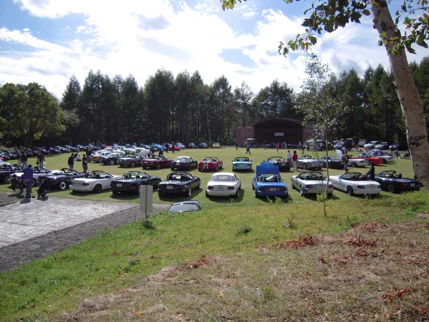 目的地到着後、茶臼山高原道路の面ノ木園地パーキングに移動して雑談&試乗会。