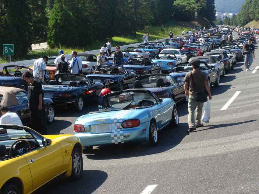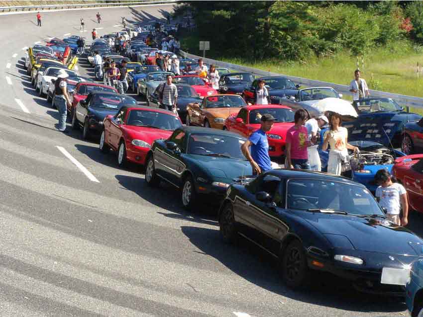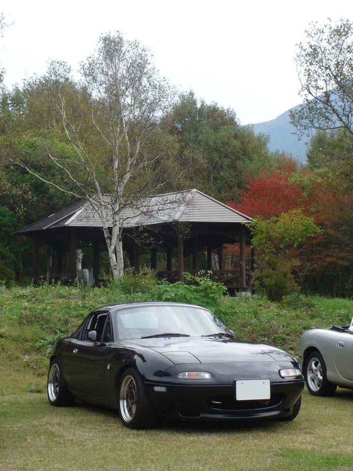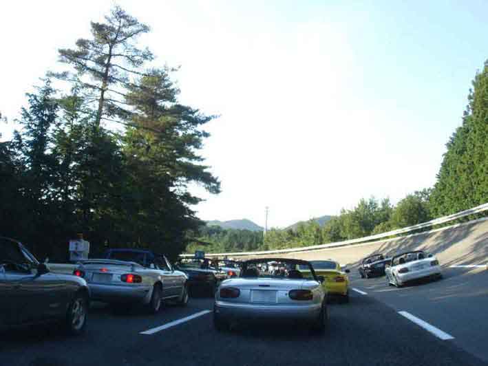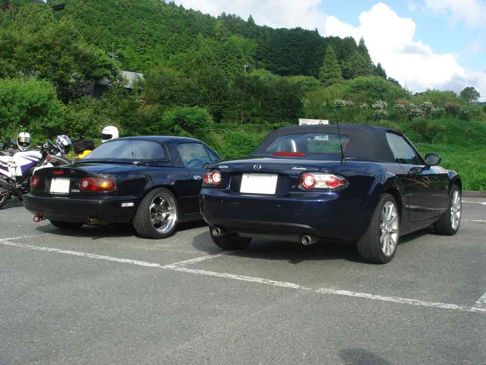 せっかくなので、詳細レポートを書こうかと。 【19日 土曜日】 この日は朝から子供の運動会だったので朝から参加してきましたが、途中寝不足とミーティングへのワクワク感でお腹が痛くなってしまい、一度帰宅して胃腸薬を飲んだりしました。 薬が効いて体調回復したので、午後から親子競技で子供をおんぶして走ったりと、お父さんは頑張りましたよw 運動会が終わって帰宅して、深夜の移動に備えて1時間ぐらいお昼寝。夕方に出発前の洗車。荷物を積み込んで準備完了! 20:45 出発 出発時のオドメーターは103608km。 ちなみに広島まで自走で行くのは初なので、イマイチ距離感が分からないんですが、すごく遠いのは間違いないらしいw 21:20 渋滞 浜松西ICから暫く走ると、音羽蒲郡~豊田JCTまでの区間で渋滞。1000円効果でこの区間は慢性的に渋滞してるのでもう諦めてます。通常45分で行くところ+50分で抜けました。 豊田JCTを抜けて伊勢湾岸道~東名阪~新名神~名神~京滋バイパスまでは渋滞無し。 23:30 大山崎JCTで名神に戻って、吹田JCTのところで渋滞発生。 【20日 日曜日】 0:00 中国道入り ちなみにここまで一台のロードスターと会っていません。もっと走ってると想像してましたし、もしかして自分が日付間違えた?と不安になったり・・・。 1:00 休憩 小腹が空いたのとトイレ休憩のため加西SAで休憩。すると4台のロードスター集団発見!日付間違えてなくて良かった。 外に出ると半袖短パンだと寒いぐらいの気温。17℃くらい?車の中で熱々のたこ焼きを食べてると、続々とロードスターがSAに入ってきます。 普通の人はミーティングのこと知らないので、何事か?と思ったでしょうね。燃料計の針は半分手前だけど、念のためここで給油。 1:45 西へ その後ひたすら中国道を西へ。加西SAを出るとロードスターを見かけるようになって、知らない人と2~3台で深夜のツーリング。盛り上がって来ました! 3:15 仮眠 岡山を通過中に急に睡魔が襲ってきて、無意識に路肩を走ってしまったりと危険を感じたので、神郷PAで1時間ちょっと仮眠。疲れていたのか、運転席側のフルバケットシートですぐに爆睡。 4:45 三次近し 顔を洗って再出発。外気温は15℃。山間部は冷え込みますね。目的地の三次ICまであと少し。 5:30 三次到着 ほ~り~さん達はこしゅうメンバーと合流するため、泊まっているホテルへ。早朝と言う事で車の通りが少なく、走ってるロードスターの姿は無し。 5:40 ホテル到着 ホテルの駐車場に入るとロードスターで埋め尽くされてる!エコカー全盛の時代にスポーツカーが多いという、非日常の世界。 8:30 会場へ はこしゅうメンバーと合流したあと、会場へ向かうが道路はえらい事に!交差点に差し掛かれば全ての方向からロードスターが走る!しかも会場に向かう道が一本しか無いため、ロードスター渋滞が起きてる・・・。 すれ違うロードスターに手を上げて挨拶。何という一体感。多くの方が手を振ってくれて、ちょっと感動しました。 これがロードスターの良いところなんだなぁ。 続く・・・ 以前の記事で我が28の前オーナーのKさんが帰国されたと書きましたが、ついに戦闘車両を購入されたので、お披露目を兼ねてツーリングに行ってきました! なんか並ぶと28がすっかり旧車に見えるのは仕方ないな。実際15年前の旧車だしw 参加された皆さん、楽しい時間を有難うございました。また季節が良くなったらお会いしましょう! 久々の更新です。