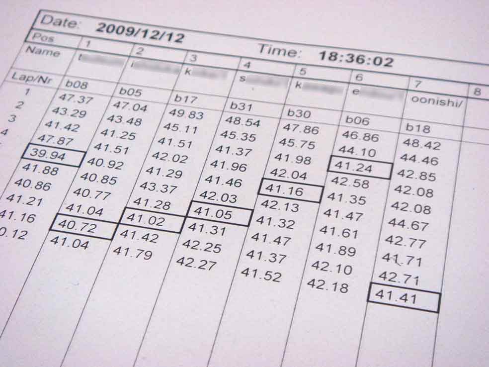 自分は今年5月に走ったきりで、11月に会員の有効期限が来て更新しようかどうしようか迷っていたけど、クイック浜名のHPを見たら2010年10月31日まで通常5000円のところ2000円で更新できるとか!これは申し込むしかない! と言うわけで、めでたく二年目に突入w 今回の参加者ははこしゅうGPに参加していたT君、I塚君、K池君、S君、Kさんと本格レーシングカートをやってるEさんと自分の7人。 コースは18時からの走行だったのでフルコース。自分は今まで昼間の走行でショートコースばかりだったので、フルコースを走るのは初で、他のメンバーはフルコースを走りこんでいる経験者。 今回は人数が集まったのでレースパックでエントリー。レースパックとは20周を参加者が自由に使って良いプランで、例えば練習5周、予選5周、本選10周とか、予選5周、スプリントレース5周、ロングレース10周など。 今回は自分は初めてフルコースを走るのと、時間に制限があったので予選10周、本選10周で行うことになりました。 で、初めてフルコースを走りましたが、スゲー難しい(汗 全然上手く走れません。特にショートコースで無かった部分の攻め方がわからん・・・。他の参加者の後ろに付いて走り方を参考にしようとしても、コーナーであっさり置いていかれる始末orz 練習を終わってタイムを見ると、上級者のT君が39秒台、その他のメンバーは40~41秒前半。 自分のタイムは42秒中盤・・・。根本的に何かが違う・・・。 しかし子供連れて来なくてヨカッタヨ・・・。「お父さん遅いね~」なんて言われたら、立ち直れなくてヘルメット被ったまま浜名湖に入っていくところだったw で、気を取り直して本選。グリッドはリバース形式で、練習走行で一番速かったT君が最後尾で、遅かった自分がポール。この方がバトルが多くて楽しいとか。 後ろを走る人たちは自分より速いのは分かっているので、どこで先にいってもらうかがポイント。 今まではジムカーナやはこしゅうGPのようなタイムアタックばかりだったので、実はバトルは苦手(と言い訳しとく)。 シグナルグリーンでレーススタート! もう一周目から煽られっぱなし&団子状態。完全に自分がフタになってますw みんなごめんよ~。 2周めぐらいから抜かれ始めて徐々に順位は後退。途中コーナーで車体同士がぶつかって弾き飛ばされたり、T君が珍しくスピンしたり、後ろからガンガン押されてV-TEC状態になったりと、バトルの面白さを味わいました。 で、皆は遥か先に行ってしまった最終周に進入のアクセルワークを変えてみたところ、ステアをそれ程入れなくても綺麗にリヤがスライドして曲がって行けることを発見!なるほど!これを上手く使って曲がれば良いんだな。 ドラテクの本に「アクセルは第二のステアリング」と良く書かれていたけど、これほど体感できたのはこれが初めて。ヤバイ・・・。この感覚はハマリそう。 で、順位は7台中7位。トップドライバーでもあるまいし、初めはこんなもんでしょう。タイムは41秒41で、練習より1秒タイムアップしました。しかも何かを掴んだ最終周でw 初コース&初日の20周目でこのタイムがどんなもんかはわかりませんけど。 気心が知れた仲間同士でレースするのは楽しいですね~。カートって多少無茶に扱っても何とかなっちゃうのが、箱車と全然違って奥が深いところかな。 多分年内にもう一度行きます。 PR