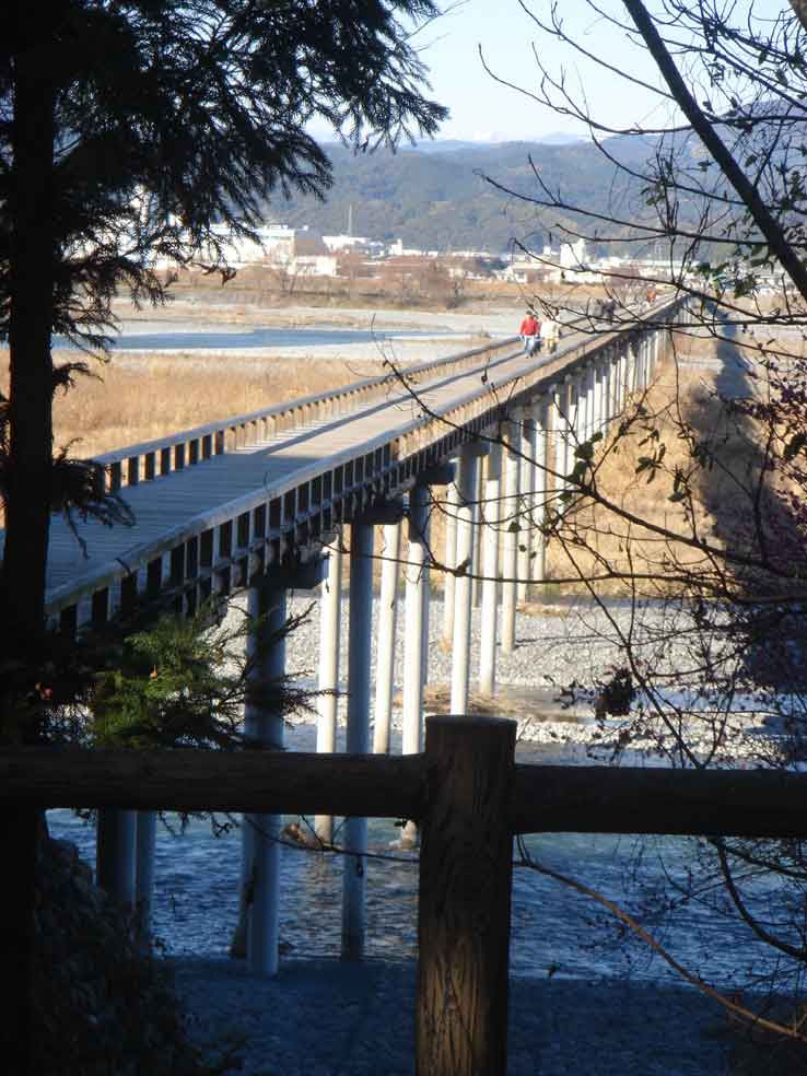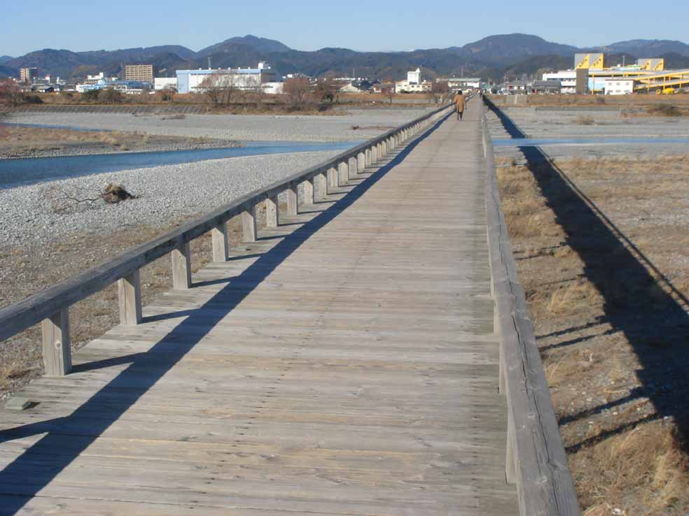 リクエストで焼津さかなセンターへ行きたいとのことなので朝10時に出発して、東名は渋滞も無く11時前に到着。 さかなセンターは15年ぐらい前に職場のバイク仲間とツーリングで昼飯に寄ったきり。なので市場は初めて入ったけど、お店の人の売り込みの熱さに圧倒されました。一通り見て回って色々買い物を済ませ、お昼ご飯は回転寿司屋へ入って色々注文したけど、全部美味かったです!但しお値段も良かったけどね・・・。 さかなセンターを後にして、せっかく静岡県中部まで来たのだからちょろっとドライブ。 以前島田市民代表のほ~り~さんのブログで島田市にある木造の橋の記事があったのを思い出して、行ってみました。 大井川にかかる蓬莱橋(ほうらいばし)。 距離は900m弱で往復40分程度とか。渡れるのは歩行者と自転車のみで、大人&自転車100円、小学生以下の小人10円。 ちなみに橋の袂に17台分の駐車場があります。 手摺りが低くて結構スリリング。橋のほぼ中央まで歩いて、足元を見ると・・・ 「ど真ん中」w 手書きで味がありますなぁ。 対岸まで歩いて一休み。視界が広いしのんびりしてて良いなぁ~。 戻って歩き始めると遠くの山には「茶」の文字が!流石お茶の産地。 戻って良く見るとギネス認定のモニュメントがありました。 その後歩いて喉が渇いたので、近くにある開港前から色々と話題になっている「富士山静岡空港」へお茶しに。 空港までの道路は整備されてるし、建物自体は地方空港の標準サイズで綺麗だし、駐車場が無料でサービス満点と思ったら、空港内にレストランとコンビニ、お土産屋はあってもスタバとかちょっとお茶できる施設が無い!搭乗者優先の静岡茶を振舞うコーナーはあったけど、普通のお客さんは利用しにくいって。 早々に静岡空港を後にして御前崎方面へ。途中相良のお茶畑を横目で通ったけど、スケールが違いますね~。あと牧之原の150号線バイパス沿いにある風力発電の風車は間近で見ると迫力あってカッコエエ。 御前崎に行く途中で「なぶら市場」があったので急遽寄ることに。ちなみに「なぶら」とは昔の漁師言葉で魚が群れている様とか。ここでも買い物をして御前崎を回って浜松へ帰着。 実は静岡県に30ウン年住んでて焼津~島田ってあまり立ち寄った事が無かったけど、実際に行ってみると見所ありますね~。ほ~り~さん情報有難うございました! PR