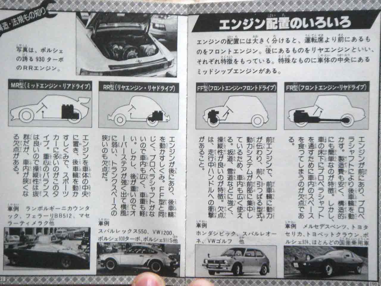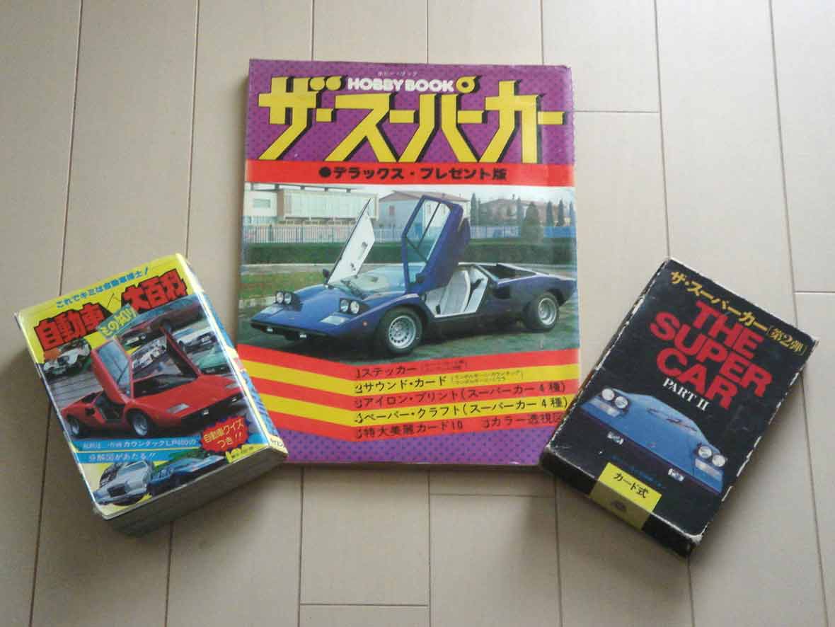 実家に帰って色々発掘したところ、お宝を発見しました! 1960~70年代生まれの人は、大きく影響を受けたスーパーカーブーム。自分は小学校低学年で強烈な印象が残ってて、これがきっかけで車好きになりました。 で、その頃買った本がまだ残ってまして・・・ 特に「自動車もの知り大百科」は暗記するほど読んでましたねぇw カウンタックのできるまでとか レシプロとロータリーの違いとか・・・ 足回りの種類とか エンジンレイアウトの違いとか・・・ まだ4WDが載っていないのが時代を感じますね~w 今見ると小学生が読むにはかなりマニアックな内容。でもおかげで車の基礎知識を覚えました。 これはスーパーカーのカード式写真集。パートⅠは持ってませんw 「ランボルギーニ・ミウラ」やオフロードタイプの「ランボルギーニ・チーター」とか カロッツェリアシリーズのテレビCMで使われた「ベルトーネ・ストラトス」とか アルファ、トヨタ、日産のショーカーとか どれも懐かしいですね~。墓場まで持っていこうw PR
