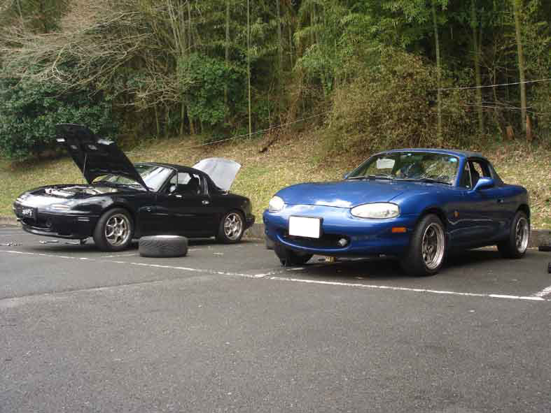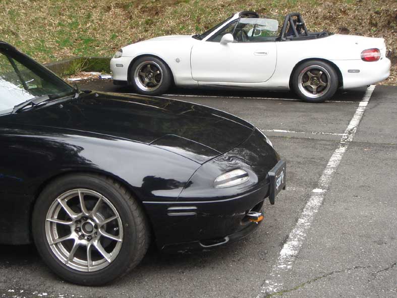 自宅を出る時は快晴で、今日は走行会日和♪と思ったけど清水を超えたあたりから雲が出始めて、富士インターを降りる頃にはポツポツと雨が・・・。 白糸に着いた時には短時間だけど雪が降ってました(焦 3月も下旬と言うのに、富士山恐るべし。 コースはウェット。天気が回復するのを祈るのみ。 今回は台数が少なくて13台。気心が知れた常連さんばかりでした。 195 F-Cup指定のフェデラル595RS-R。サイズは195/50R15。新品のバリ山です。 10時過ぎになると日が差してきて路面はドライに。でも気温は低く10度以下かな?タイムアタックするには絶好のコンディションです。 今回足回りをいじってシェイクダウンのKさん。タイヤは235/40R17のR1Rという極太な男前サイズ。走り方をイロイロ試していました。 NCって外から見てると安定してますね~。ポテンシャル高そう。 41秒2を出してご満悦のKさんと ただならぬオーラを発するタイヤw 自分の枠になってタイムアタックすると、41秒466。前回の205/45R16のフェデラル595RS-Rのタイムが41秒430だったからほぼ同じ。そんなに差が無いのね・・・。 ここで、他の人がフェデラルを履いたらどんな印象を持つのか、実際タイムは出るのか興味があったので、195 F-Cupに参加を検討しているMARUさんに、せっかくの機会なので布教活動を兼ねて試着してもらいましたw MARUさんのクリーンなNBがホイールを変えたら極悪風味にww ちなみに自分はMARUさんが使っているBSの01Rを使わせてもらいました。極悪28が善人に見えますwww 実は01Rは初。BSのハイグリップタイヤは凄い久しぶり。おそらく以前履いたのはRE710kaiじゃないかな?って10年以上昔かw 01Rのインプレは凄くオールマイティーな感じ。縦と横のグリップバランスが一定なんですね~。製造年週を見ると約3年前だったのでグリップが落ちてるかもしれないけど、癖が無くて扱いやすいかも。 ちなみにタイムは41秒9でフェデラルの0.5秒落ち。MARUさん有難うございました。 で、肝心のMARUさんがフェデラルを履いてたたき出したタイムは・・・ 41秒348! サクっとオーナー殺しにあいました(泣) 暫定で195 F-Cupのトップタイム! タイヤを付け替えてすぐにタイムを出すMARUさんは流石。 MARUさんのこの日の01Rのベストが41秒9ぐらいなので、0.6秒アップ。自己ベストも0.3秒更新したそうです。走行後にインプレを聞きましたが「粘着系ですごく食いつく」「縦のグリップがイイ」「乗ってて楽しい」と高評価を頂きました。布教活動は成功かなw 一方195 F-Cupに参戦を表明している我等がほ~り~隊長。今回は車高を下げて195/55R15のR1Rで参戦。 黙々と走ってるな~っと思ったらすっごい笑顔で「自己ベスト更新したよ!」と。 40秒690!! はこしゅうGPのラジアル最速! もはや次元が違う・・・。 ここでほ~り~さんに「195 F-Cupにエントリーしてるんだから、フェデラルを履いてタイムアタックしよう!」と言うと、「このまま気持ちよく帰らせて~」と。 ん~?聞こえんなぁ~w あと28にR1R履かせてフェデラルと比較します。 で、三台同時にタイヤ交換大会ww R1Rは以前ほ~り~さんのNBを試乗させてもらった時に体験済み。その時は縦のグリップは高いけどブロック剛性がイマイチな印象でした。 ここでほ~り~さんが「実は空気圧は一昨年の年末にチェックしてから見てません」と告白w 念のためチェックしてみるとなんと1.5キロ!こんな低くてラジアル最速タイム!?R1Rってそういうタイヤなの? 結構ツラツラで、ATSのホイールも似合うね~。 195/55なので、外径が大きくインナーフェンダーにボリボリ当たるけど、グリップはフェデラルより上ですね。フィーリングはSタイヤに近いかな。 乗ってるとタイム出た手応えはあるけど、実際のタイムは41秒358とほ~り~さんの0.6落ち・・・。 タイヤの良い所使えてないっぽい。 ちなみに遠州仕様になったほ~り~さんのNB。車高短に深リムは似合うね~。 で、肝心のほ~り~さんがフェデラルを履いてたたき出したタイムは・・・ 41秒054! 本日2度目のオーナー殺し(号泣)195 F-Cupのトップタイム更新!! このまま行けば、ほ~り~さんははこしゅうGPのラジアル最速と195 F-CupトップのW天狗。 ちなみにR1Rの0.4秒落ち。ほ~り~さんのフェデラルのインプレは「良い意味で期待を裏切られた」「楽しい!」「買おう!」とコチラも高評価。 この時点での順位とタイムを確認すると 1位 ほ~り~さん 41秒054 2位 MARUさん 41秒348 3位 おおにし 41秒466 結構激戦だね~。 このまま終わるのは悔しいので、タイヤを元に戻して走ろうと思ったら・・・ 無常の雨・・・。なんか天に見放された気分w 暫くすると雨は止んで、アタック再開。途中走行順がほ~り~さんと一緒になったので、ほ~り~さんを追いかけて追走~。後ろについて走るとお互いのラインの違いがわかって面白い! 着かず離れず走れて41秒327とMARUさんのタイムを微妙に更新!ほ~り~さんに引っ張ってもらえて感謝♪ 前後を入れ替えて今度はほ~り~さんが追いかける番。天狗様から逃げ切れるか?w 最初はほ~り~さんからのプレッシャーからかミスを連発。