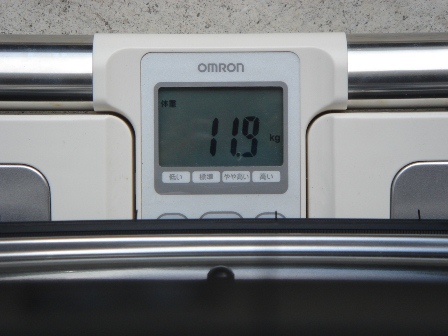 やっぱり14インチは軽い!ホイールの重量は4.4kgだったから、タイヤだけで7.5kg。