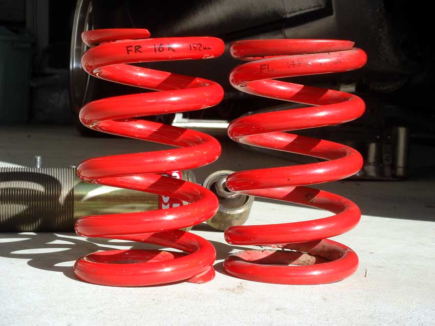 鉄は熱いうちに打てと言いますか、やっぱり運転するならラクで楽しい方がイイと言うことで、アノ感触を忘れないうちにアシをいじってみました。 スペMが欲しいのはヤマヤマだけど、お金をかけずにやれることは無いか、コニASAでやり残すことは無いかイロイロ考えた結果・・・ ◆フロント 16kg ⇒ 14kg -2kg ◆リヤ 14kg(黄色) ⇒ 10kg(赤) -4kg 先日のバネ変更の総括でもあったように、前後のレート差を4キロでトライ。 組み付けて早速近所を試乗~。 するとこれが「最悪の乗り心地」と評価した同じコニASAか?と思うぐらい、超しなやかなアシに大変身! コレは楽だわ~。 ロールってしてもイインダヨw ちょっとだけスペMに近づきました。 うえしまセンセイ、アドバイスありがとうございました! ◆おまけ コニASA 手抜きなリヤバネの交換方法 ①アッパーのナットとスタビを外し、ショックロアのボルトを緩めてショックを車両外側に傾ける。 ②アッパーシートを外せばショックを外すことなくバネを抜くことが可能! ③バネ抜き後 大昔FISCO(当時)で知り合ったロードスター乗りの人がコレやってたのを思い出して実践してみましたw おそらく左右で5分ぐらいは作業時間が短縮できるかもwww PR