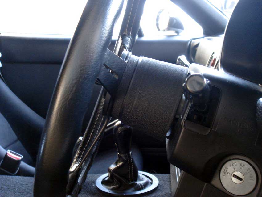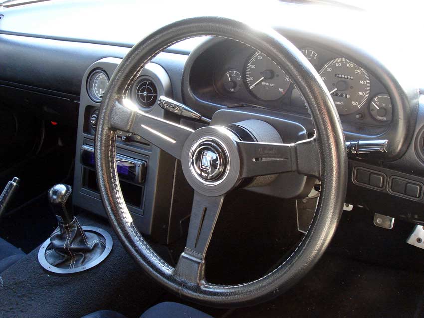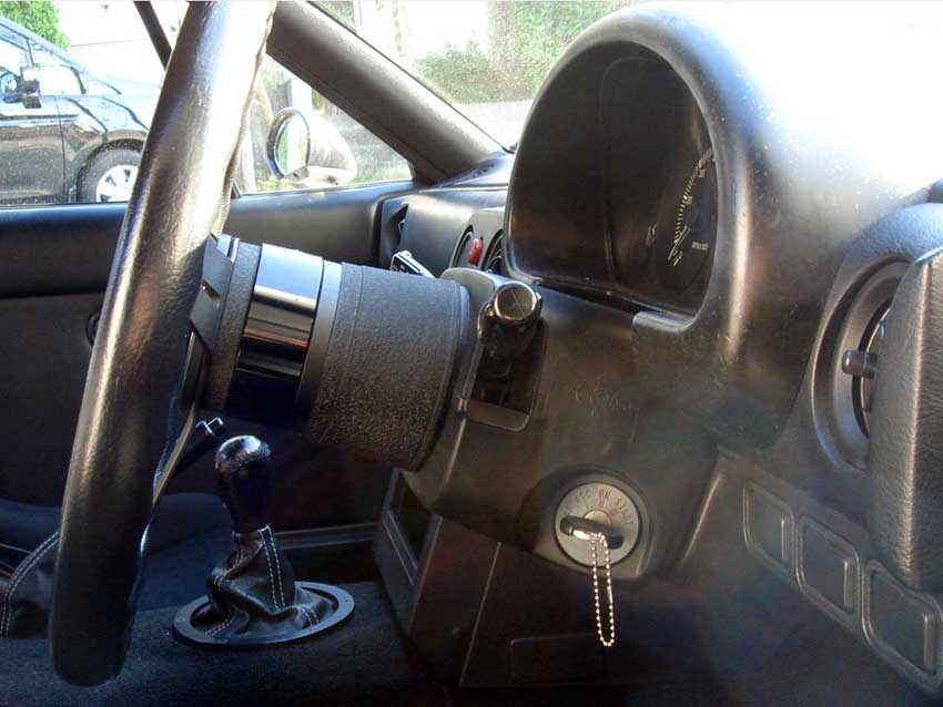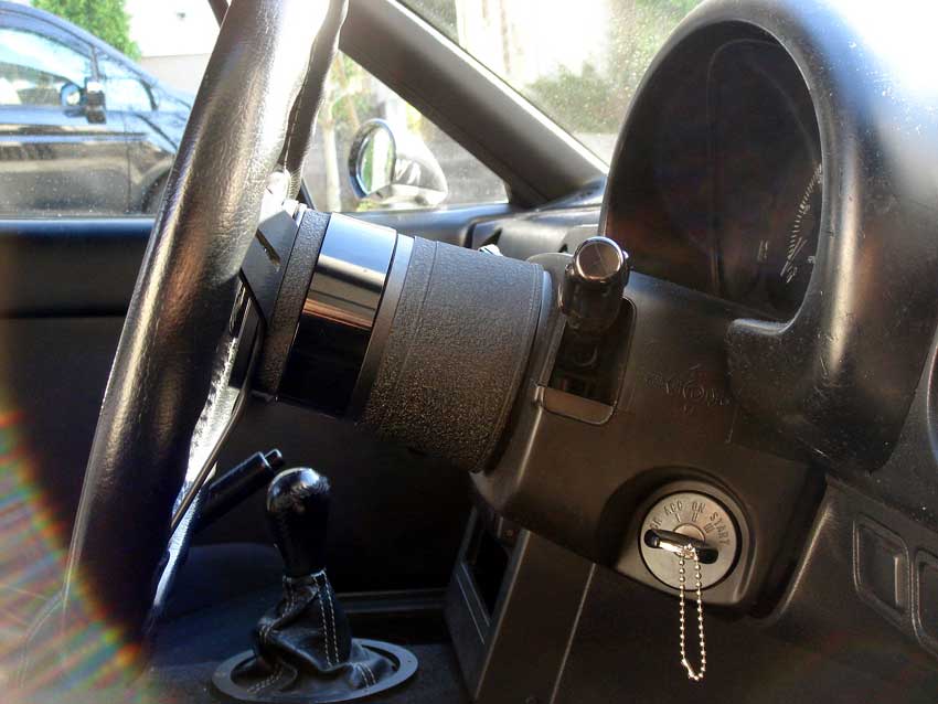 皆さんのロドスタを運転してみると適度にリラックスできてイイカンジ。 今更なネタではあるけど、ぐっさん@猛烈RSの記事を参考にしながらドラポジを改善してみました。 ちなみに現状は ステアリング: ナルディクラッシック360mm+汎用ボス+スペーサー10mm シート: レカロSP-G+シートレール純正+サイドステー自作 NA6に乗ってた頃、通販ショップのローポジシートレールを使ってたけど、スライドの調整幅が大きく強度も適当で、ブレーキ踏んだらスライドのロックが外れ(!)、最後はロックが粉々に粉砕しました。 今のは調整幅が細かくて強度の心配がない純正レールをベースに、スプリントの大石さんに図面を渡して作ってもらったサイドステーを使ってます。 現状のステアリング。 早速SABで30mmの汎用スペーサーを調達したけど、付属のボルトがヘキサゴンを使う皿タイプでナルディクラッシックには付かない。 仕方がないので静岡県では幅を利かせているホームセンター「ジャンボエンチョー」で普通のロングボルトを購入~。 スペーサーかまし後。 ウィンカーレバーを空振りするようになりました(お約束)w で、こうなるとステアリングがどんどん上に行ってしまい違和感がアリアリ・・・。 第二ステップでチルト化をしてみました。 ロードスターは純正でチルト&テレスコ機構は無いけど、ちょっと工夫するだけで調整が可能です。 コラムカバーとインパネ下のカバーを外し、ボルト2本(ソケットは12mm)を外します。 ボルトに続き、エンチョーで厚さ1.625mmのワッシャーを調達。 これだけあれば足りるだろーw 最初試しに7枚=約11mmかましてみたらステアリングがすごい下がってしまったので、4枚=6.5mmにしてみました。 M8のボルト用ワッシャーで、内径8.6mm。 . ぐっさんの教えの通り、ワッシャーを養生テープでひとまとめにすれば取り付け時にバラバラになりません。 チルト化完了ー。 ◆比較画像 チルト前 チルト後 間違い探しのような微妙な変化だけど、ステアリングコラムカバー上とメーターフードの下側に隙間ができました。 最初のドラポジと比べると、膝と足首の角度が緩やかになって、フットレストを足の裏全部で踏ん張れるようになりました。 実は今までかかとを付けられなかったのは内緒w シートのスライドも今まで足は窮屈でもステアリング合わせでメ一杯前側のとこまで使ってたけど、数ラッチ後ろに下がりました。 お尻が軽い28の重心が少しでも後ろに下がったら良いなー。 PR