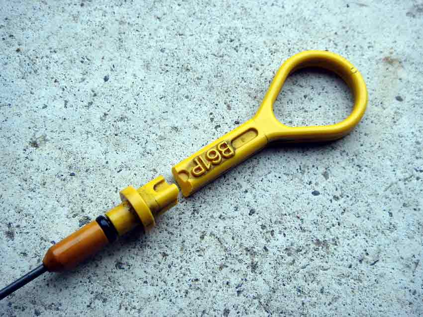 先日のALT走行前チェックの時、オイルの量を見ようとレベルゲージを触ったら、ポッキリ折れました。