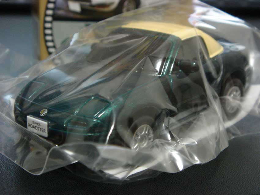 ラインナップを見てみると、トヨタ2000GT、フェアレディZ S30、セリカ 1600GT、マツダ サバンナRX-7、トヨタMR2 AW11、ユーノスロードスター、ランサー エボリューション、ホンダNSXの8種類。 箱裏の見本写真をみると、ロードスターの出来は割と良さげ。 300円だし試しに買ってみようと思って、在庫を見ると3個しかない。 ロードスターが入っているとは限らないけど、箱を持ち比べてみると微妙に重さが違う。 軽く振ってみる。 「カサカサ」 「コトコト」 音も違う。 うーん、悩む。 何となく一番軽いのがロドスタっぽいな~と思って、「カサカサ」を選んで家で開けてみると ロドスタを引きました! あー、びっくりしたw PR