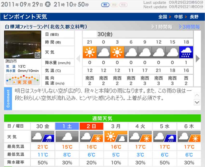 そう言えば当日の現地の天気予報を確認しました。