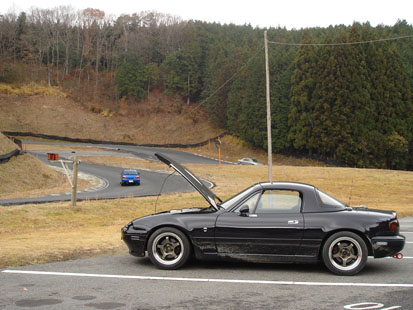 当日は朝から良い天気でしたが、前日まで雨が降っていた為、到着時のコースコンディションはまだウェット。前回のトラウマから立ち直るため、10時スタートまでに乾くのをひたすら祈るのみ。 自分の課題は作手の新コースに慣れることと、終わりかけのハードコンパウンドのSタイヤ(真ん中スリップサイン出まくり&逆履きw)にトドメを刺すこと(笑 【一枠目 10:00~10:50】 スタート時の路面コンディションは、日陰になる1~2コーナーとブラインド~頂上ヘアピン手前が少し濡れている「部分セミウェット」状態。 体の慣らしも兼ねて色々な走行パターンを試してみますが、ナカナカ難しい(悩 一度休憩して走り方を整理してから再チャレンジ。 ①2コーナーで3→2にダウン ②3コーナー手前で吹け切ってしまうので2→3にアップ ③頂上ヘアピンで3→2にダウン ④直線で2→3にアップ で、気になるタイムは31秒248 ちなみにこの日までのロードスターランキングのトップはSタイヤが29秒270、ラジアルが30秒904なので、ラジアルにも届かず・・・orz 【二枠目 12:00~12:50】 コースコンディションはまだ部分セミウェットなので、タイヤを温めながら徐々にペースアップしていた3周目、ブラインドコーナー奥でリヤが流れ横向きでスピン! 「ズキャー!(うをー!土手が迫るー!)」 「ガッ!!(!?!)」 「ザッザッ・・・(あわわわ・・・)」 「シーン・・・(ほぅぅぅ、止まった)」 ヘアピン進入の外側に逆向きでコースアウトしました(泣 車は土に埋まって自力では脱出不能になってしまったので、重機+人力で救出してもらいました。 28は軽量化の為フロント右側しか牽引フックが付いていませんが、万が一のことを考えてリヤにアルミ製の牽引フックを付けていたので、今回役に立って良かったです。 お手伝い頂いた皆様、有難うございました。 ピットに戻って車両チェックすると外観に凹みや傷が無い。 一安心と思って胸を撫で下ろしていると、サイドシルフランジの一部が少し凹んでる・・・(号泣 「ガッ!!」は車が横に滑って縁石を乗り越えるときにフランジが当たった音でした。まぁここなら目立たないので自分で直せそうです。 下回りをチェックしてからアタック再開。 徐々に乗れてきますが、1~2コーナーがまだ濡れているのでイマイチ攻め切れません。あと、2コーナー立ち上がりの路面角度が切り替わるところでリヤが出てしまいます。 作手は奥が深いです。 で、後半乗れてきたところで出たタイムは31秒046と一枠目から0.2秒アップしましたが、ランキングからは程遠いですね・・・。 【三枠目 13:00~13:50】 雨が降り出して路面はウェットになったので、前回の反省を踏まえて走行は止めました。 今回の走行は運ちゃんと車の課題が見えたので良かったです。次は秘策投入して30秒入りしたいところ。 【番外編】 今回ご一緒したOさん(インプ)とKさん(R34)が車に乗ってみてくださいとお誘いを受けたので、ご好意に甘えさせてもらいました。 ■Oさんのインプレッサ WRX 以前スバルのDラーで同型のSTIを試乗した時に、あまりの速さと止まりにビビッたので、緊張しながらコースイン。ちなみにサーキットでスポーツヨンクは初ドライブ。 乗った印象は「難しい」。進入オーバー、出口アンダー。直線はパワーとトラクションがかかるけど、それをコーナーで生かしきれていない感じ。 Oさんも同じ感想で悩んでいて「もしかしたらタイヤが古いからかも」と。 見た目は新品同様バリ山のネオバを履いていますが、タイヤの刻印を見ると02年の51週製造って・・・。丸5年前のビンテージネオバじゃないですか!タイヤの寿命は1~2年なので新品に換えましょうヨ! あとブレーキのフィーリングがスポンジーでちょっと頼りなかったです。もしかしてエア噛んでる?正確なインプレ&セットアップはタイヤを替えてからですね>Oさん ■KさんのR34スカイライン 25GT-B(4ドア) こちらも人生初ドライブ。ロードスターと同じFRだからそれほど緊張せずにコースイン(笑 乗った印象は「楽しい!」。直6ターボの4ドアセダンなので車自体は重たいはずなのに、結構ヒラヒラ曲がりブレーキのフィーリングもイイ。これは予想外!(失礼!) トラクションコントロールをオフにしたので、駆動輪内側がホイルスピンしてしまいアクセルコントロールに気を使いましたが、オーナーと同乗して34秒台で周回できました。 いつまでも乗っていたくなる印象で、とっても面白かったです。 Oさん、Kさん、有難うございました。 【交通情報】新城側からR301を使ってALTに入る方 12月14日現在、R301の道の駅「つくで手作り村」手前が道路工事のため未舗装になっていました。当日は雨が降った後で車が泥だらけになってしまったので、状況によっては本宮山スカイラインを通って迂回する方が良いかもしれません。 PR