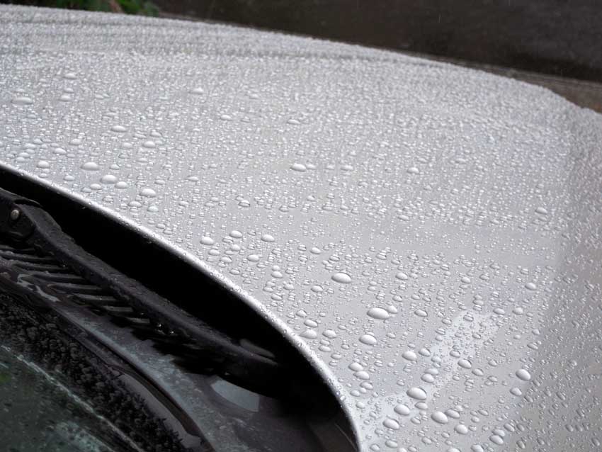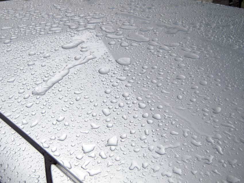 今日は朝から雨ということで、先日施工したクリスタルキーパーの威力を実感しました。