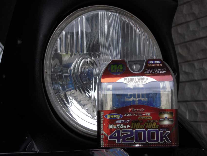 光軸が狂っているわけではなく、ポジションランプ+α並みの光量しかありません。 交換するバルブを近所のニワトリマークのホームセンターで調達。 プラチナホワイトカラーのH4バルブ(2個セット)がなんと1050円!安い!安すぎる!!156のポジションランプの方が倍の値段するってどうよ。 今回ダメになったバルブも同じ値段の同じブランドだけど、性能は普通だし寿命が短いわけでもないので、もうコレでいいです。消耗品だしね。 左が新品、右が交換したもの。バルブトップのブルーはイマイチかな。 交換後。バッチリです。 ※車両右側(向かって左側)はまだ使えるので今回は交換しませんでした。 PR