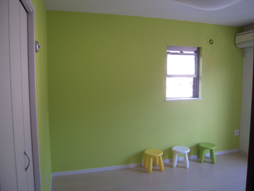 GWに次男の部屋の壁を塗ったら思いのほか印象か良かったので、今日は長男の部屋の壁を塗ってみました。