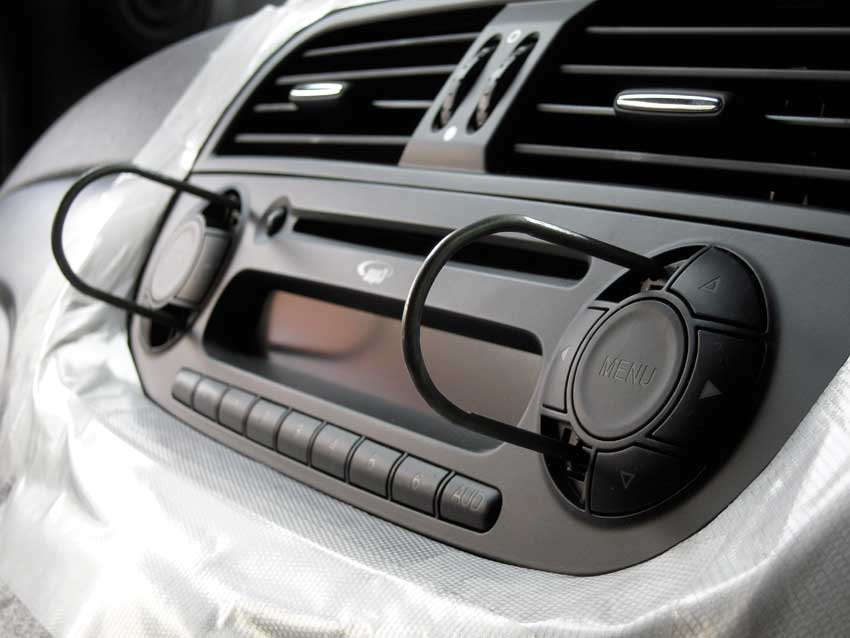 最初にオーディオの取り外し。ボタン風の キャップを取り外します。 オーディオ周りが傷付かないように養生します。 ここで必要なのが専用のオーディオ取り外しツール。今回は某お店で相談したところ「余っているので差し上げます」と分けてくれました。感謝! 丸穴に差し込んで手前に引っ張ると抜けます。 自作のナビステーはベンチレーションにネジ止めしました。あと、電源コードをベンチレーションの隙間を通したので、コードが通るようにベンチレーションのケースを棒やすりで削りました。 ちなみにコードが通る分ケースを削らないと、ベンチレーションが付きません。 ステンレスなステーの質感が500Sの内装には合わなかったので、余っていたカーボン調のマジカルアートレザーを貼ってみました。 フロントウィンドー越しの眺め。イイカンジです。 なるべく目立たないように電源コードを取り回し。 視界の遮りは最小限で、使いやすい位置に収まりました。 オーディオのキャップを戻して完了~。 PR