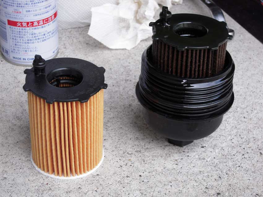 今回の新兵器は工具のお店ストレート製のカースロープ。 セットして前進すれば完了。なんてラクなんだ(笑。 エンジンオイルは前回と同じくFUCHSの5W-40で、今回はドレンワッシャも交換しました。ディーラーで買うと1個200円(!)もする高級品です(泣。 ちなみに左が新品で、右が使用済み。 フィルターを交換しますが、ツインエアのフィルター位置はココです。 コレがフィルターのケース(樹脂製)。 場所が狭いのでエクステンションを2連結+ユニバーサルジョイントを使って外しました。フィルターケースのソケットサイズは24㎜と大き目。 新品のオイルフィルター。 ロドスタとは違いフィルターのみを交換するタイプ。Oリングのパッキンも付いてきます。 取り外したフィルターケースとフィルター。 さぁ交換しようと思ってフィルターを回しても引っ張ってもケースから外れない。外し方をググってみても見つからず、ディーラーのメカさんに電話して教えてもらいました。親切なメカさんに感謝! 「はまっているだけなので、引っ張れば外れますよ」とのことで、プライヤーやドライバーで悪戦苦闘すること数分、こんな結末に…。 バラバラ(笑。 コレが外れなかった原因。ケースの底にある爪の力が強いんですな。 まぁ、壊す前提なら何とかなると言うことで。 ちなみにエンジン側のフィルターケースはこんな感じ。この構造はオイルがこぼれなくてイイですね。 忘れずにパッキンを交換します。この後新品のフィルター(位置合わせあり)を先にエンジンに取り付け、ケースの蓋をして完了。 次回は4000㎞の予定。 PR
