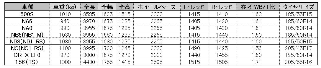 今まで街乗りメインでも十分楽しかったので興味津々でしたが、結論から言うとやっぱり楽しいクルマでした。 どーんと長い直線が続くところだと大排気量のクルマにはついて行けないけど、特にセコイコーナーが続くところでは思いのほかキビキビ走れました。 クルマの車幅が狭いので、車線内を目一杯使ってのライン取りもバイク感覚で楽しい。 気に入ったのはコーナー進入のフィーリングがロドスタと似ているところ。FFなのにしっとりとしたヒラヒラ感がありました。 面白かったのは人とタイヤの距離感がロドスタと似ているなと感じて諸元表を見たところ… ホイールベースとトレッド、タイヤサイズがほぼほぼ同じ(笑。比較で最初に買ったCR-Xとも比較したけど、こっちも近い数値でした。CR-Xはエンジンが元気だったので乗った印象は全く違いますけど(笑。 奥がキツイコーナーでも舵角を足せば曲がるし、立ち上がりでアクセル入れてもフロント内綸が空転することもない。おそらく、シャーシとパワーのバランスが良いからかなと。 普段はファミリーカーとして使えて、ツーリングでも楽しいとなれば言うことなしですね。 PR