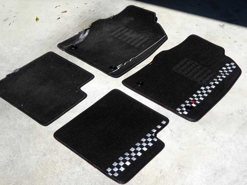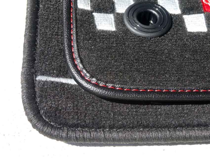 どうやら洗濯機の蓋とマットが高速で擦れて、擦り切れ&パイルが硬化してしまったようです。 フィアットのM口さんに電話して新品のお値段を確認すると2万円オーバーとのこと(泣。 心の傷を癒すため新品のマットを注文しました。せっかくなので別の柄で。 マットの刺繍や外周の処理、赤色ステッチなど結構仕様が違うので驚き。これで同じお値段なので、チェッカー柄の方がお得かも。 チェッカー柄が前席から後席のマットまで続いてて良いですね。 500Sを購入する時この柄と迷ったのですが、スポーティー過ぎるかなーと思い、シンプルな方を選択したんです。 マットとシートが赤ステッチと合皮を使っているので、素材感が合っていて良さ気。 ちなみに取説には… だそうです。大事にします。 PR