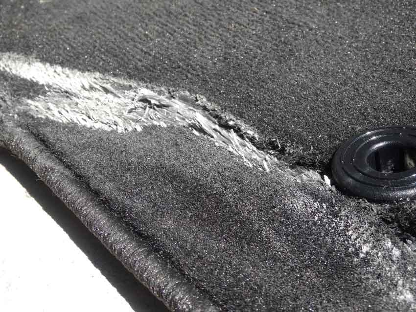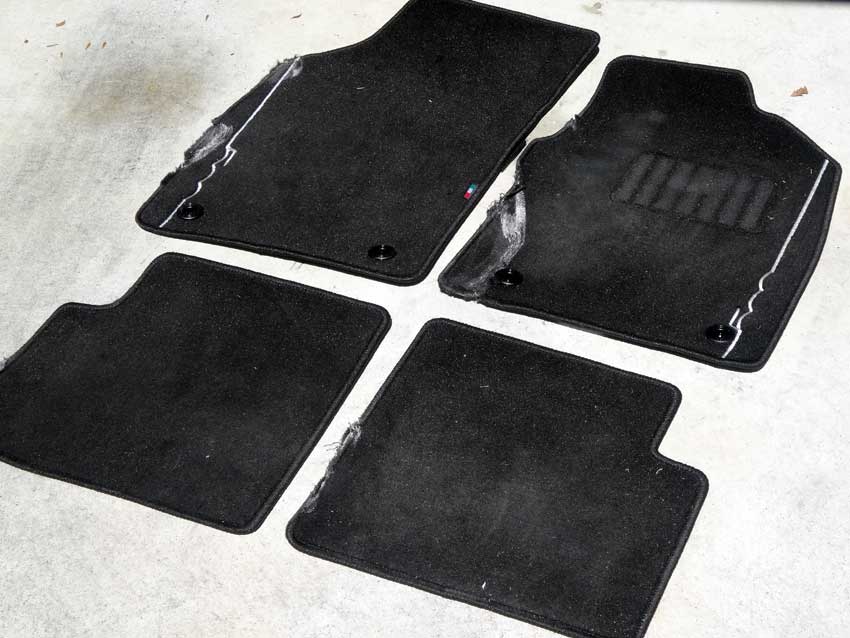 先日500Sのピースマット(フロアマット)が汚れていたので水洗いをして、乾かす時間を短縮するため洗濯機で脱水をしたら、ズタボロになってしまいました…。