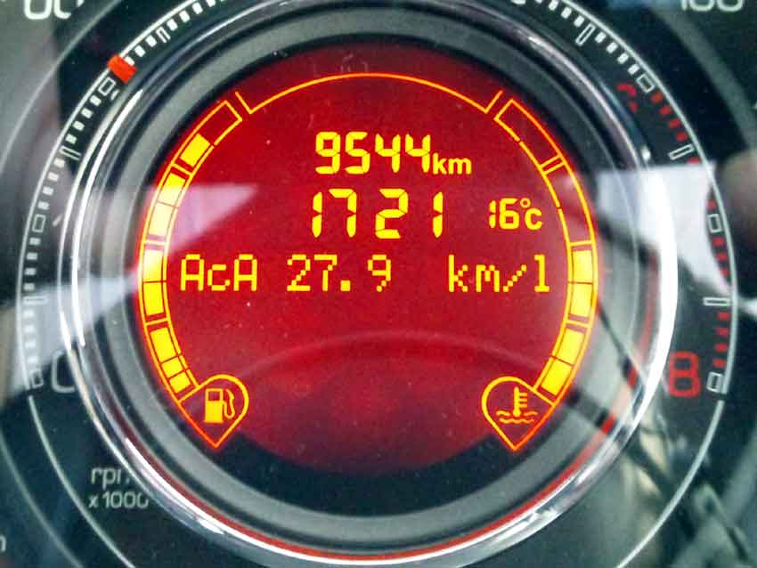 500Sで京都~浜松間を名神~東名ルートで燃費走行したら、平均燃費計が27.9㎞/Lを記録しました。