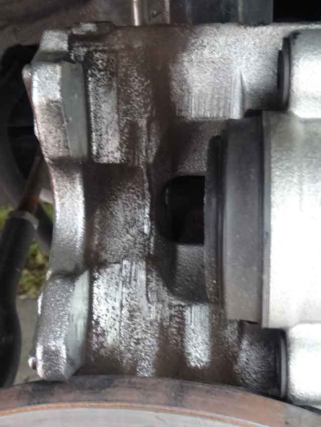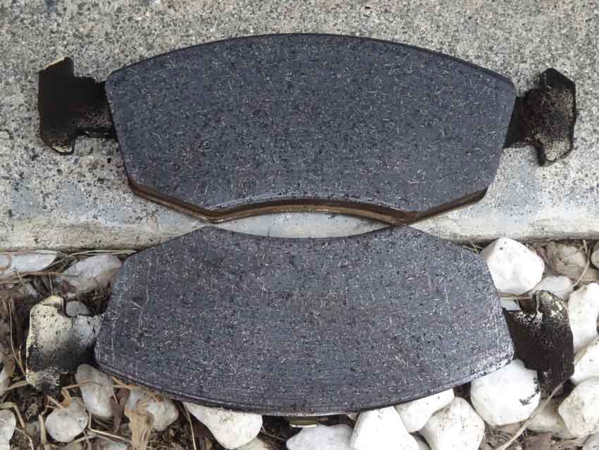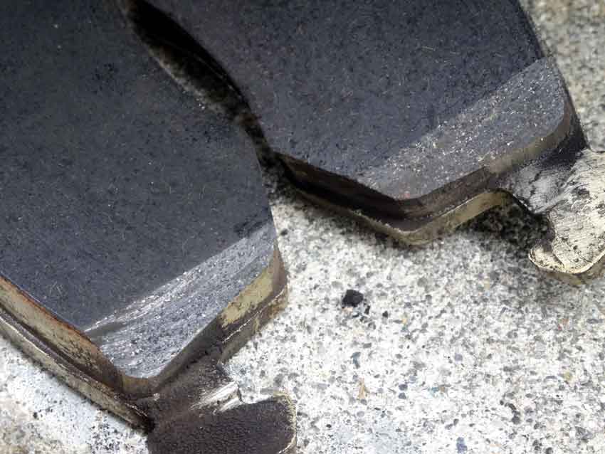 鳴き対策でパッドの角をディスクグラインダーでガーッとかっ飛ばし。