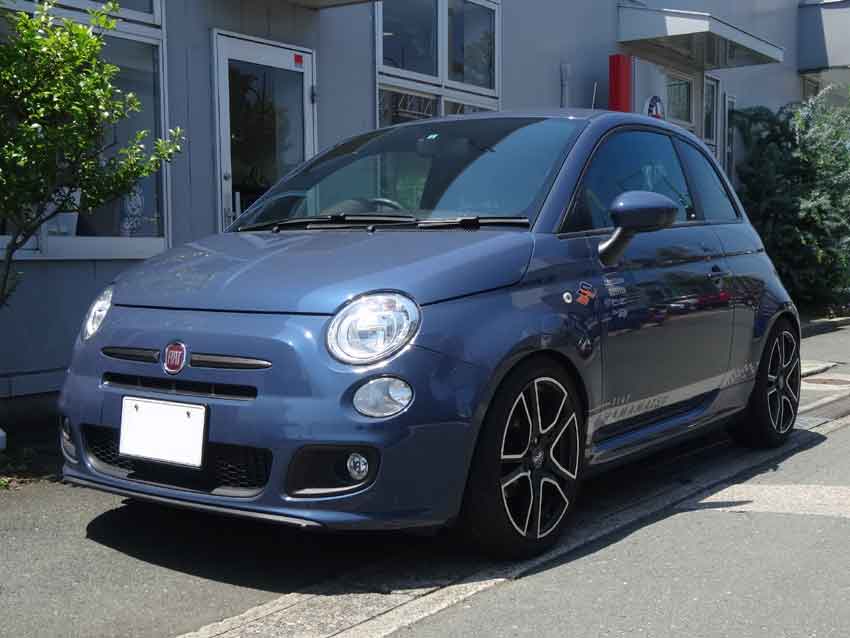 一日コースなので代車を貸してもらったら、なんとフィアット浜松のデモカーの500Sが来ました。 ちなみに自分が500Sを買う前にほぼノーマル状態で試乗したクルマ。 その時からインチアップ、ビルシュタイン車高調、パワーアップキット、デカールチューンとかなりやる気ある出で立ち。 せっかくなので普段通りに使ってみたところ、正直「辛かった」です(笑。 いやぁ、久々に足が動かないクルマに乗ると胃に来るねぇ~。タイヤ幅が広くなったことで抵抗が増えてタイヤ転がらないし…。 個人的には街乗りで使うにはノーマルがイチバンかな。やっぱりバランス良くできてますよ。 あと気になったのは、走行距離4000㌔ぐらいなのにウチの500Sよりもエンジンマウントが経たっていると感じたこと。試乗車なので高回転を酷使されているのかな。 と言うわけで、ツインエアのエンジンマウントは快適性を考慮して元々柔らか目なので、使い方によっては早くユルくなるのかもしれません。 点検は無事終わって問題なし。やっぱり自分の500Sがしっくり来ますなー。 PR