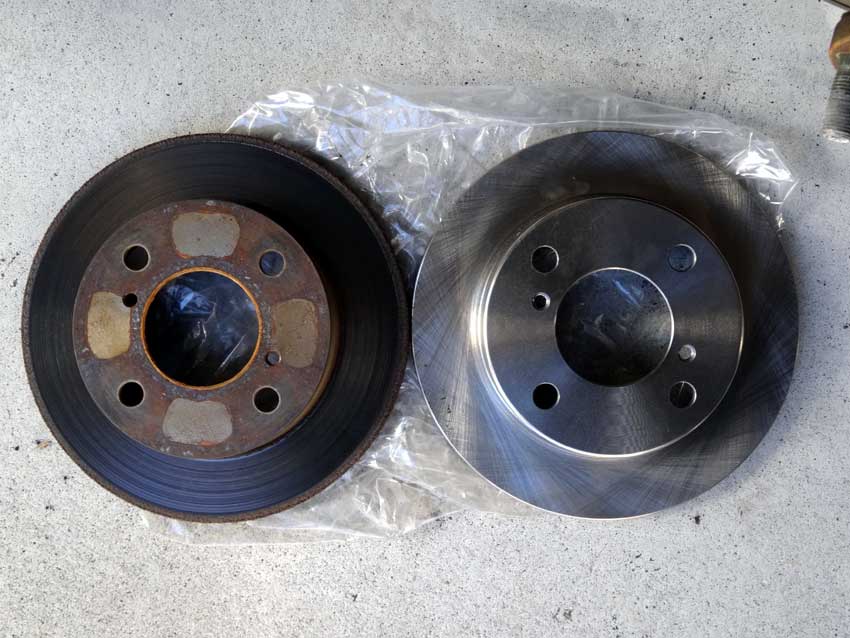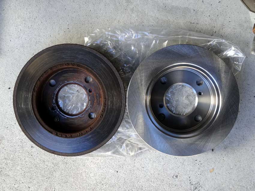 時期的にそろそろなのと、少々ジャダーが出て来たのでディスクも交換。ネットで部品を取り寄せ本日作業。 ちなみに、新品のパッドとディスクが1台分セットで7500円(税・送料込)で買えるとは、いい時代になったなぁ。 外したパッド。残りは1~3㍉で、特に一番右側はギリギリでした。 外したディスク表側 裏側 外周にパッドが綺麗に当たってませんね…。 新旧のディスク比較。 やっぱり新品は綺麗だわ。 品番などの情報がディスクのフチに刻印されてます。 新旧のパッド比較。新品の厚みは9.5㍉で面取り済み。 リフレッシュしたブレーキ周り。ついでにブレーキフルードも交換。 走行距離85500㌔。次回交換時期は17万㌔か…。 PR