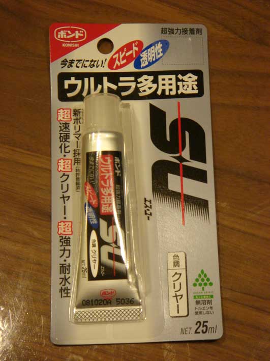 近所のホームセンターで金属と樹脂に使える多用途の接着剤を買って来ました。