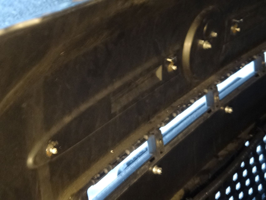 500Sの純正インパネガーニッシュは若干青紫味の半艶シルバー塗装。