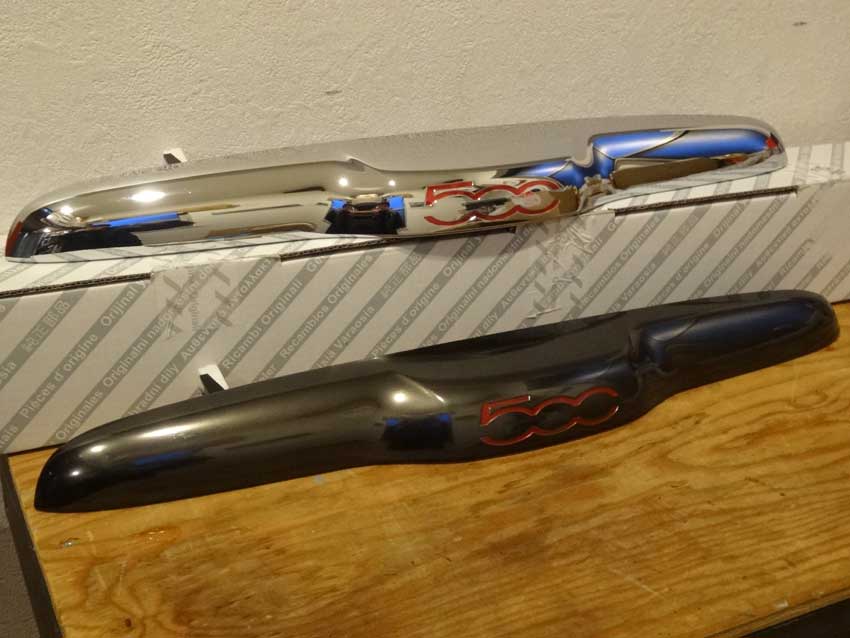 実は500Sを購入してしばらくしてからずっと気になっていたモディファイをいよいよ実行。 と言うのも、ウチの500Sは車体色がガンメタで、ホイール、グリル、ドアハンドル、ライセンスガーニッシュは車体色とは違う専用色のガンメタで、一見するとガンメタ通しでメリハリに欠ける見た目。 購入当初はツインエアと5MTの楽しさにこの見た目も許せていたのですが…。 そもそも500Sの立ち位置はあくまで500のスポーツルックバージョン。ツインエアエンジンの性能はPOPと同じで、外装は専用デザインの前後バンパーとエアロ、15インチアルミ、内装は専用シート、ステアリングが標準装着されていること。 本当の高性能バージョンはアバルトがあり、500SはアバルトとPOPの間にいるモデルで、その割にPOPにある楽しげな雰囲気が無く見た目だけやけに男っぽい。 色々シミュレーションした結果、グリルの黒ヒゲが500らしさを無くしていることがわかり、標準のメッキグリルに交換。後期の金属調シルバーよりもガンメタの車体色に映えるかなと。 交換前後のグリル。 グリルを交換するにはバンパーの脱着が必要です。 光線の違いで分かりにくいけど、黒ヒゲと比較するとフィアットエンブレムの付いている車両中心に目が行くようになりました。 変な重さが取れて、普通の500っぽくなりました! フロントグリルをメッキにしたので、一緒にライセンスガーニッシュもメッキ仕様に交換。 コチラもクルマの中心に目が行くようになりました。 純正の500ロゴはガンメタですが、500Sのアイコンである赤いロゴにカスタム。ガーニッシュとロゴの色は、元のガンメタとの組み合わせよりもハッキリ見えて個人的にはマル。 充実感が増えて質感もアップしたので満足です。 その2からの続き。