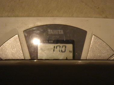 今回は普段履きの15インチネオバで行こうかと思っていましたが、先日入手した16インチのタナボタSを使ってみることにしました。せっかく手に入れたのに、寝かしておくのはもったいないですよね! 恒例の測定。 タイヤ&ホイールを組んだ状態で量りました。 17.0kgちょうど。 以前ホイールの重さを量ったら7.4kgだったので、タイヤの重さは9.6kgです。 過去の測定データを一覧にしてみました。