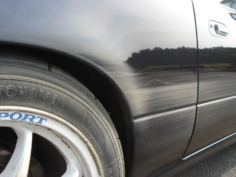 修理前。改めて見ると結構深いキズです・・・orz最初はいつも使っているワックスでこすってみましたが、全然ダメ。ちょっと焦る・・・。 深いキズ消し用に以前買っておいたコンパウンドの登場。 スリーエム カット1-L 某スタイリングのN沢さんから「28のリヤスクリーンのキズ落としに良いですよ」と勧められ購入しました。 ウエスに付けて良くこすります。研磨力が落ちてきたなと思ったら、継ぎ足してひたすらゴシゴシ。 ゴシゴシ・・・ 修理後 元に戻りました!キズも消えて艶も復活~!ワックスをかけて完成です。 このコンパウンドはプロが使う業務用なので性能が良くオススメですが、ホームセンターでは取り扱ってないところもあるようなので、通販や自動車修理屋さんで購入できるようです。 すっかり常連になってしまった「はこしゅうGP アーリーサマーステージ」に参加しました。
