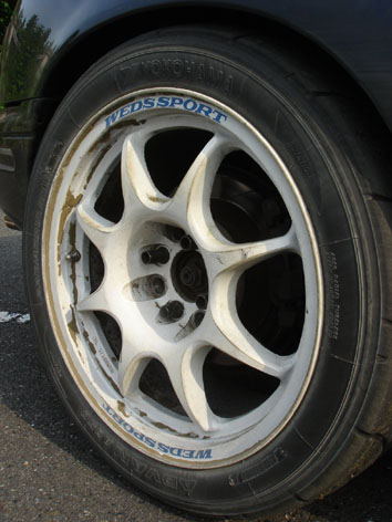 よく見ると・・・ YH ADVAN A050 225/45R16 Sコンパウンドォォォ!? 何で最新のSタイヤが・・・、しかもバリ山の状態で捨ててあるの?ご丁寧にシールまで付いてw もしかしたら置いてあるだけかもしれないけど、捨ててあったらすっごく欲しいので、ダメモトでお店の人に聞いてみます。 おおにし(以下お)「すいませーん。表の廃タイヤの山に積んであるSタイヤって、お客さんが一時置きとかしてるんですか?」 お店(以下店)「いや~。確かもういらないって言ってたよ」 お「パンクとかして捨てたんですかね?」 店「パンクはしてなくて、コンパウンドが気に入らないから捨てたみたい」 お「(何てもったいない!)じ、じゃあ、まだ使えるのに捨ててあるんですね?」 店「そうだよ」 お「ほっ、欲しいので、譲ってください!」 店「そう言われると心配になってきた(焦)。もう一度持ち主に電話で確認するから、ちょっと待ってて!」 店「(トゥルルルー、トゥルルルー、ガチャ)もしもし。この間外した050のSコンパウンドって取っとくの?・・・うん、うん・・・・・・そうか。・・・・・・うん、うん・・・・・・、わかった、ありがとう」 店「持ち主がいらないって言ってるから、持っていって良いよ」 お「マジッすか!ありがとうございます!」 という訳で、思わぬところから16インチのSタイヤがタダで2本転がり込んできました! 今年3月から考えているインチアップ計画が、思わぬ形で進められそうです(笑