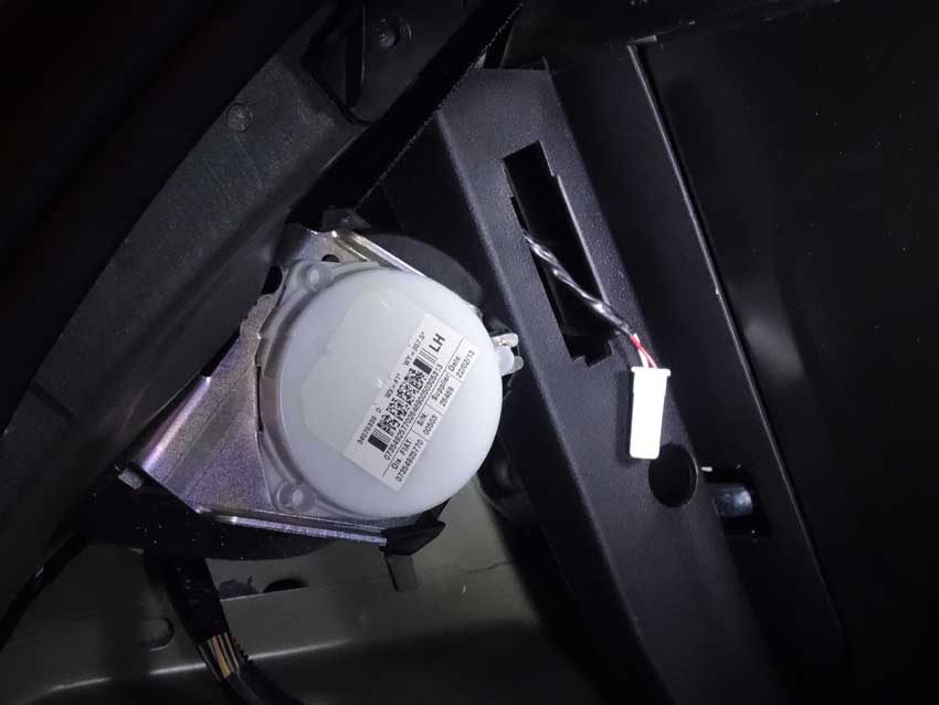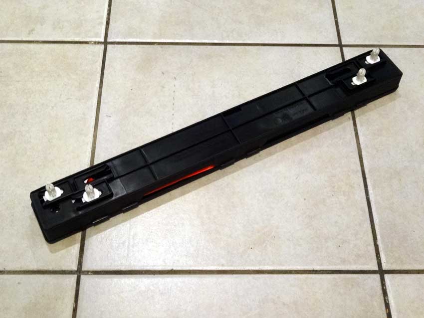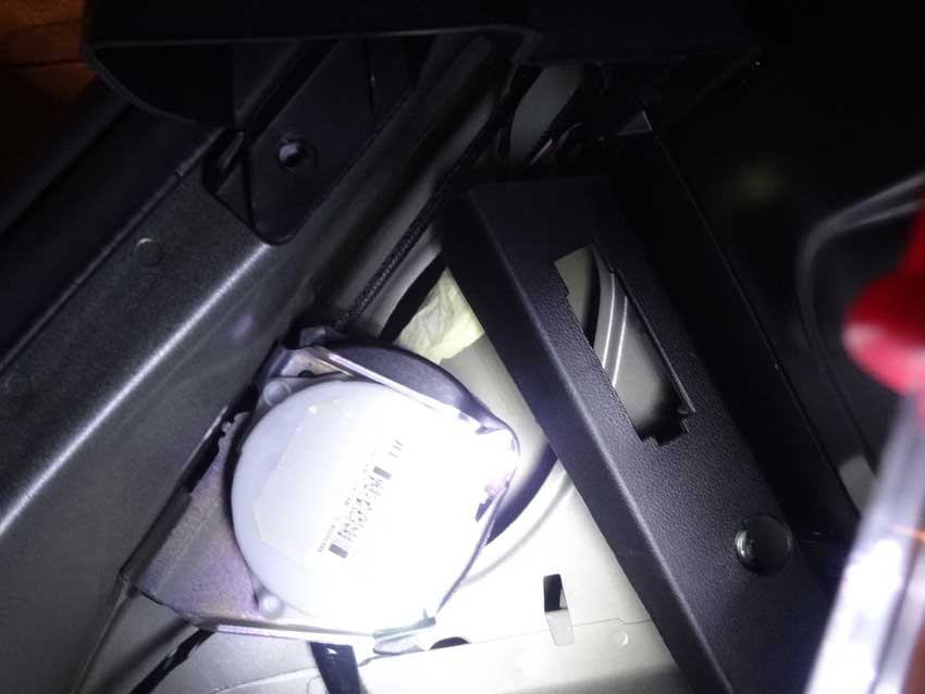 ウチの500Sには付いていなかったので部品を取り寄せました。 電源カプラーは取り付け位置まで来ているけど、ランプがありません。 真ん中の薄黄色いのがマスキングテープに保護されたカプラー。 マスキングテープをほどいた状態。 純正位置での点灯状態。く、暗い…。 ランプ周辺は明るいけど、フロアは予想以上に暗く実用的ではありません。 と言うわけで、小細工してみました。 パーセルシェルフの軸に穴をあけて…。 ハーネスを延長してランプをパーセルシェルフの中央裏に移動しました。 ずいぶんと明るくなったぞ! シェルフを立てた状態(暫定)がコチラ。 ランプは純正取り付け位置では隠れてしまうケース部分も光るので、これを利用しない手は無いですな。 普通の両面テープでは熱で剥がれてしまうので、確実に固定できる方法を考えます。 2013年9月に施工した三角表示板の置き場所。