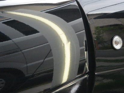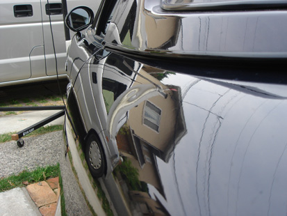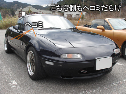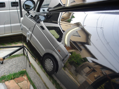 カンタンに言うと、塗装をせずに外装のヘコミを直すことです。 自分の28も、サーキット走行の激しいパイロンアタックなどで、アチコチヘコんでいます。勲章と言えば格好良いですが、ヘコミはヘコミ。 だいぶボロっちく見えてきたので、思い切って直すことにします! そこで今回お願いしたのは、浜松のスムースワークスさん。 実は過去に別のお店でデントリペアをお願いしたことがあるんですが、イマイチな仕上がりなのに「これが限界です」と通常の代金を請求されたことがあって、ちょっと心配だったり・・・。 代表の福田さんに自宅に来て出張作業してもらいました(現在は事前連絡後、ガレージに車両持ち込み)。