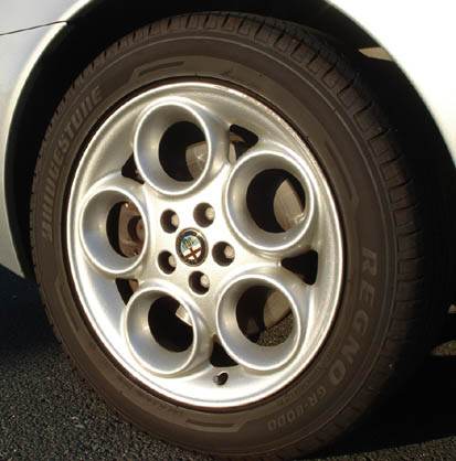 「快適な乗り心地を目指して、スプリングをTI純正のローダウンタイプからノーマル車高タイプに交換したら、乗り心地は良くなりましたが、段差を乗り越えるたびにリヤからドコドコと異音がするようになりました」 自分もロードスターで経験しましたが、純正形状のショックにローダウンスプリングを組むと縮み側のストロークが減ってしまい乗り心地&性能は悪化するので、車高を上げるのは良い方向と思います。 TIの車高短スタイルを諦めてでも、乗り心地を追求したいというマニアらしい選択(笑 さらに 「147 TIは17インチの45扁平なので、一度156の16インチの55扁平と交換して、音が消えるか試してみたいんですが・・・」 と相談を受けました。 車いじりが好きな自分には興味がある内容なので、まずは原因を妄想してみます。 今回はスプリングを交換したら異音が出るようになったので、スプリングそのもの、交換作業、その他に原因があると考えられます。 ■スプリングそのもの ・ショック、バネ下との相性が悪い ■交換作業 ・足回りの取付不良 ・トリム類のガタ ■その他 ・タイヤの空気圧 ・荷物の音 妄想内容を伝え、その他の項目を事前に試してもらったら「変化なし」ということなので、実際に音を聞いてみることにしました。 "MIYA" 家に集合。アルファが2台並ぶと格好良い! 症状を確認するためTIの助手席に乗って評価ルートを走ると、路面の継ぎ目の段差を乗り越えるたびに、右リヤから「ゴコッ」と音が。 最初は許容範囲のレベルかなぁと思ったけど、道の悪いところでは結構大きな音がするので、確かに精神衛生上良くない。 途中で後席に乗り換え耳を澄ませて音の発生源を探ると、今度は左右リヤのスプリング&ショックのあたりから「ゴコッ」と聞こえてきます。 走りながら "MIYA" と相談すると「中空ではない中実の硬いものが当たっている音っぽい」と予想したので、市街地レベルのスピードでは考えにくいけど、サスがストロークした時にスプリング同士がぶつかって音が出ている可能性もゼロではないので、チェック項目に入れました。 ジャッキアップして作業開始。 リヤから音がするので後ろの足回りを中心にチェックします。 147のスプリング形状を見てみると巻きのピッチが荒く、これではスプリング同士が当たらない。サス周りをゆすってみてもガタはないので、取付の問題では無さそうです。 無駄かもしれないけど、156とリヤタイヤを交換してみます。 147 TIのタイヤ&ホイールは215 / 45R17。スポーティーなデザインのスポークタイプで、いかにも軽そう。 タイヤはブリヂストンの純正ポテンザRE050でまだ新しい。 156のタイヤ&ホイールは205 / 55R16。147と比べると重そう。 タイヤはブリヂストンのレグノGR-8000。2年1万7千キロ走行後の状態。 体重計を持参したので重さを量ってみます。バネ下の重さが変われば変化があるかもしれません。 結果は・・・ 147 17インチ=19.3kg 156 16インチ=19.5kg!(+200g) ほぼ同じ!!持った時は147の17インチの方が明らかに軽く感じたのに・・・。 不思議です。 リヤにだけ156の16インチを付けた147。 一気にレトロっぽくなりましたよ(笑 前後でここまで印象が違うとちょっと間抜け。 たった1インチの違いなのに、えらく小さく見えます。ホイールのインチアップ&デザインって面白いなぁ。 交換してさっきと同じ評価ルートを通ってみます。変化を期待していたバネ下重量はほぼ同じなので、変わったのはタイヤの扁平率が45→55に変わって、ブランドがスポーツのポテンザからコンフォートのレグノになったこと。 走り始めて段差を乗り越えると 「ゴコッ」 ・・・(二人で顔を見合わせる) 変化なし!(泣 乗り心地や静粛性の変化は、リヤしか交換しなかったので正直良く分からなかったです。 結局原因を突き止めることができず、タイヤを元に戻して作業してもらったディーラーに相談することになりました。残念! "MIYA" 、お役に立てなくてゴメンよー(泣 その後の展開はコチラ 乗り心地マニア "MIYA" のブログ 音の原因がわかって、更なる進化を目指しているようです。 今回はいい勉強させてもらいました。 "MIYA" ありがとう! ↓次回予告 妄想が広がる~! PR